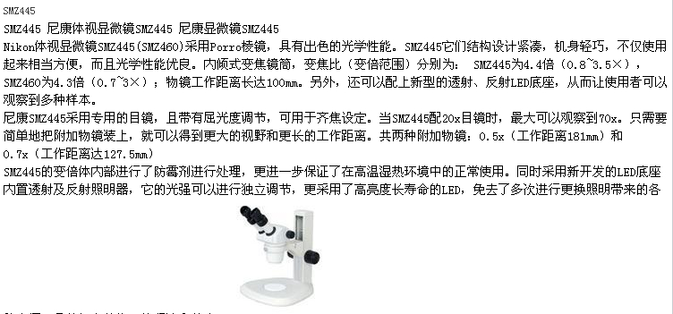 尼康体视显微镜SMZ445/460 技术参数: