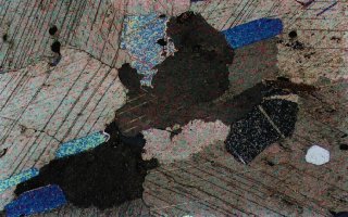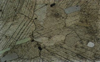 单偏光下的大理岩 正交偏光下的大理岩